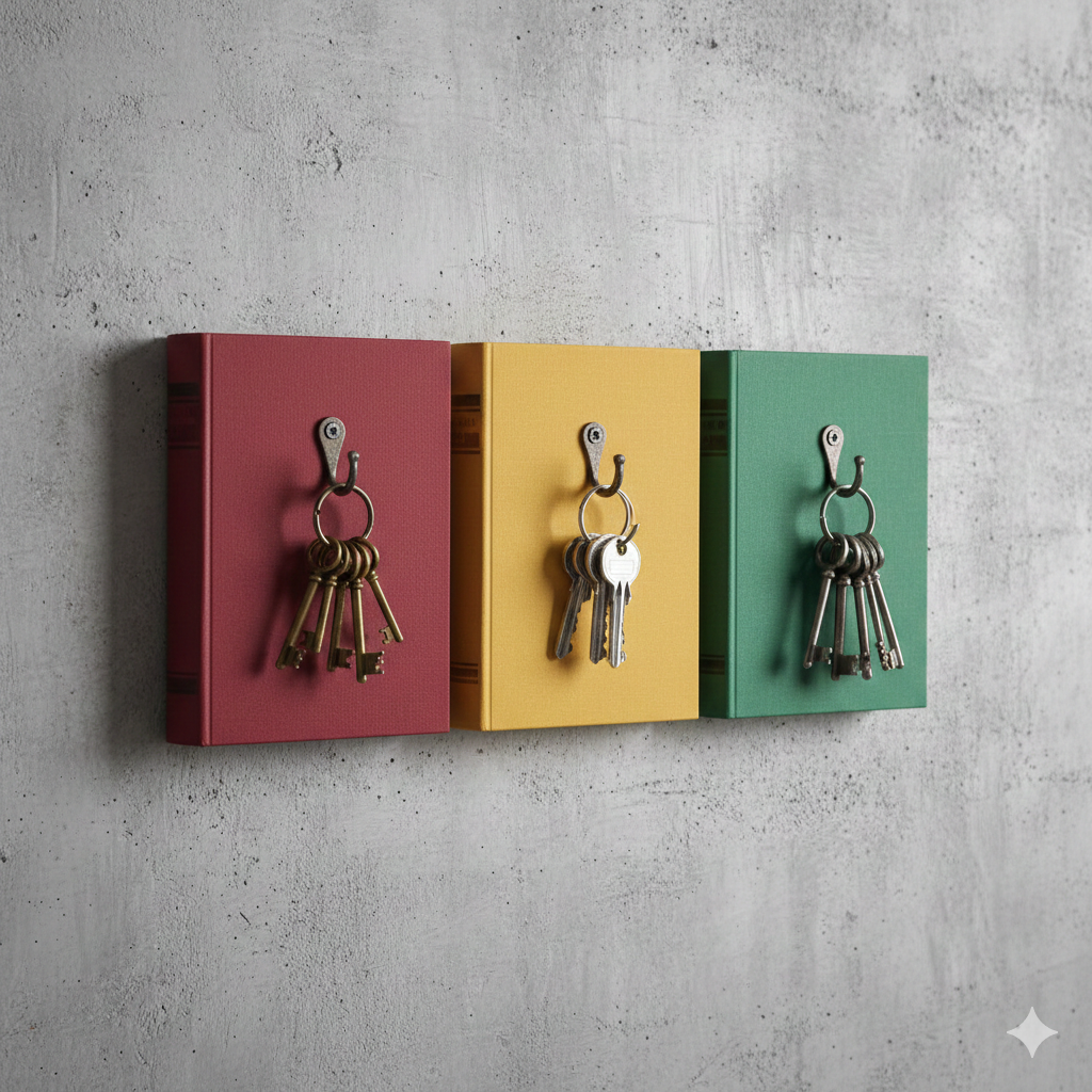 • Alltagshelfer: Versteck-Boxen in alten Buchrücken oder handgemachte Notizbücher aus alten Covern.