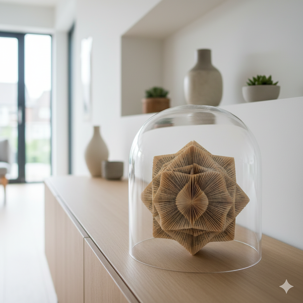 • Deko-Kunst: Gefaltete Seitenkunst (Orimoto), Lampenschirme oder Wandcollagen.