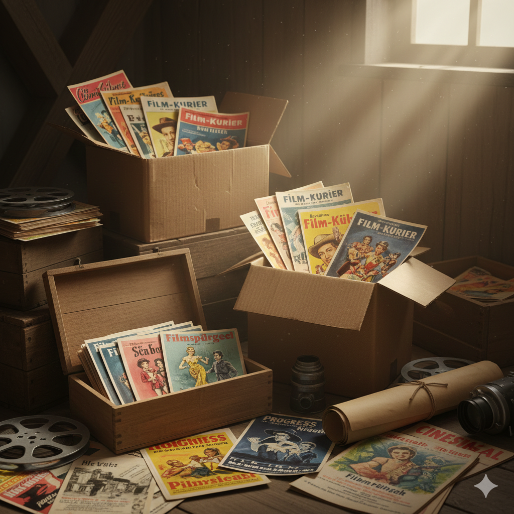 Filmprogramme spenden, alte Kinoprogramme sammeln, UFA Filmprogramme, DEFA Filmhefte, Illustrierte Film-Bühne Sammlung, kolorierte Aushangfotos, Kinoreklame Archiv, historische Filmplakate, Film-Kurier spenden, Kino-Memorabilia erhalten, Filmspiegel DDR, Licht-Bild-Bühne Raritäten.