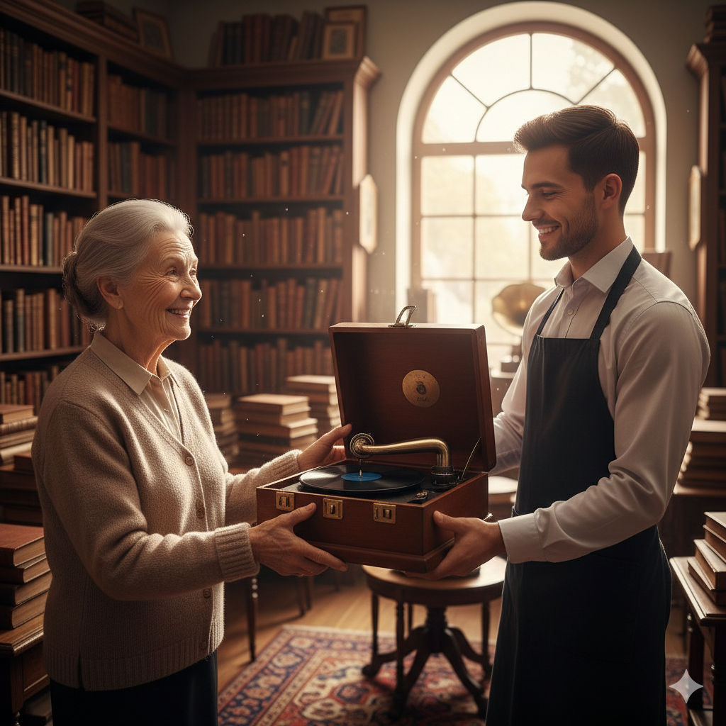 Grammophon Spenden | Haushaltsauflösung Antiquitäten | Schellackplatten sammeln | Trichtergrammophon Ankauf | Nachlass Verwertung | Antiquariat Musik | Kultur Erbe bewahren | Nachhaltigkeit Kreislaufwirtschaft | Dachbodenfund Grammophon | Koffergrammophon | His Master’s Voice | Technikgeschichte | Mechanische Musikinstrumente | Spende Verpackungsservice | Soziale Einrichtung Antiquitäten | Historische Tonträger | Emil Berliner | Antik-Spende