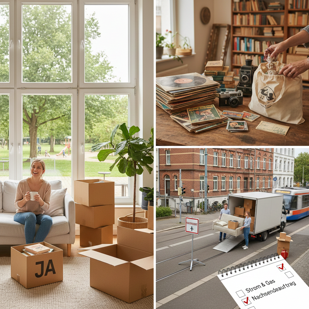 - Bürokratie-Check: Denke rechtzeitig an die Ummeldung von Strom, Gas und Wasser sowie an einen Nachsendeauftrag.